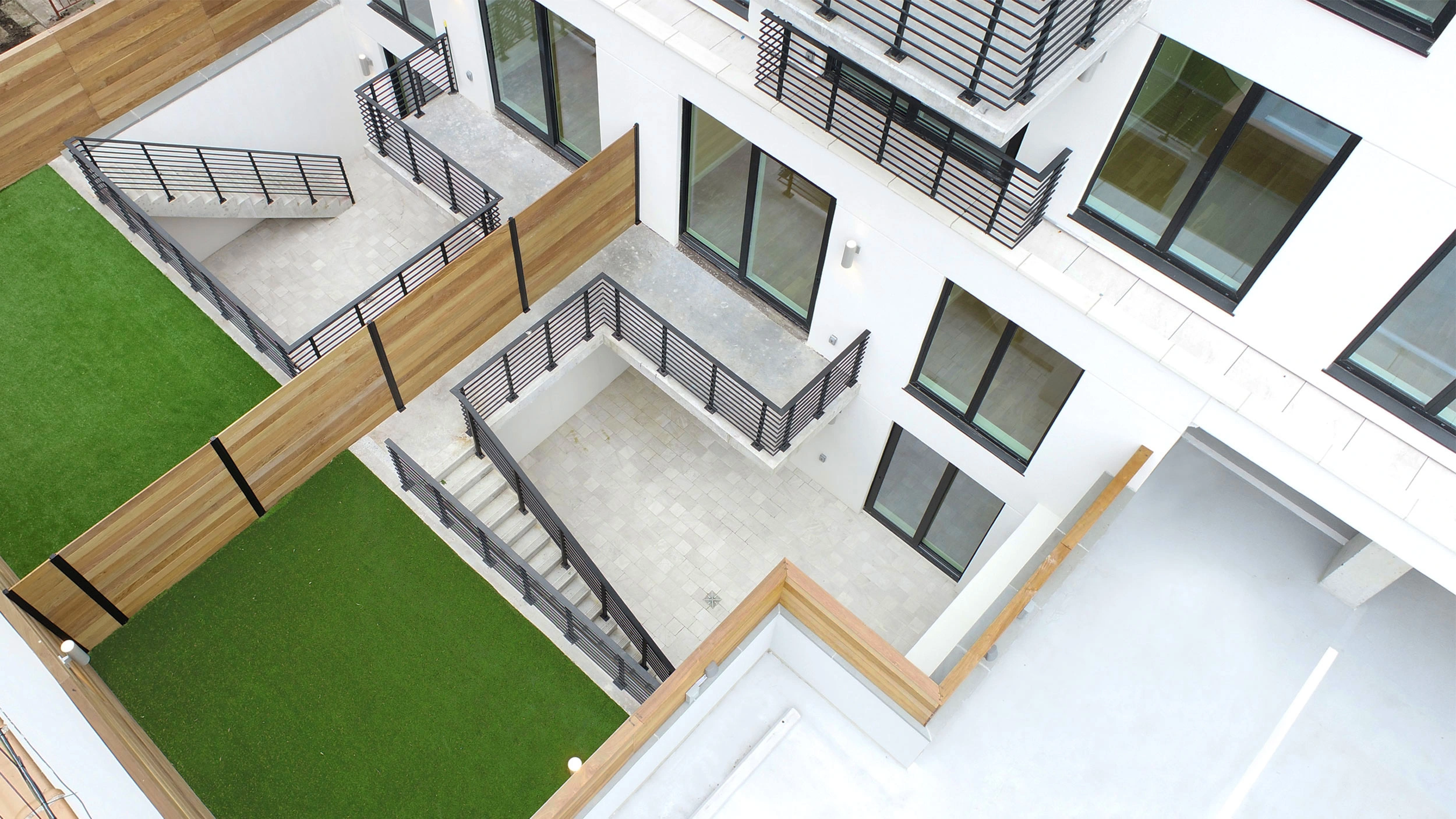 The design was conceived to combine crafted material expression with neighborhood integration. The original scheme included board-formed concrete at the first floor and crafted brick details above; through value engineering, these elements were simplified while maintaining a strong architectural character. The final façade pairs charcoal brick at the first floor with light brick on the upper levels, resulting in a clean, contemporary aesthetic that contributes positively to the streetscape.