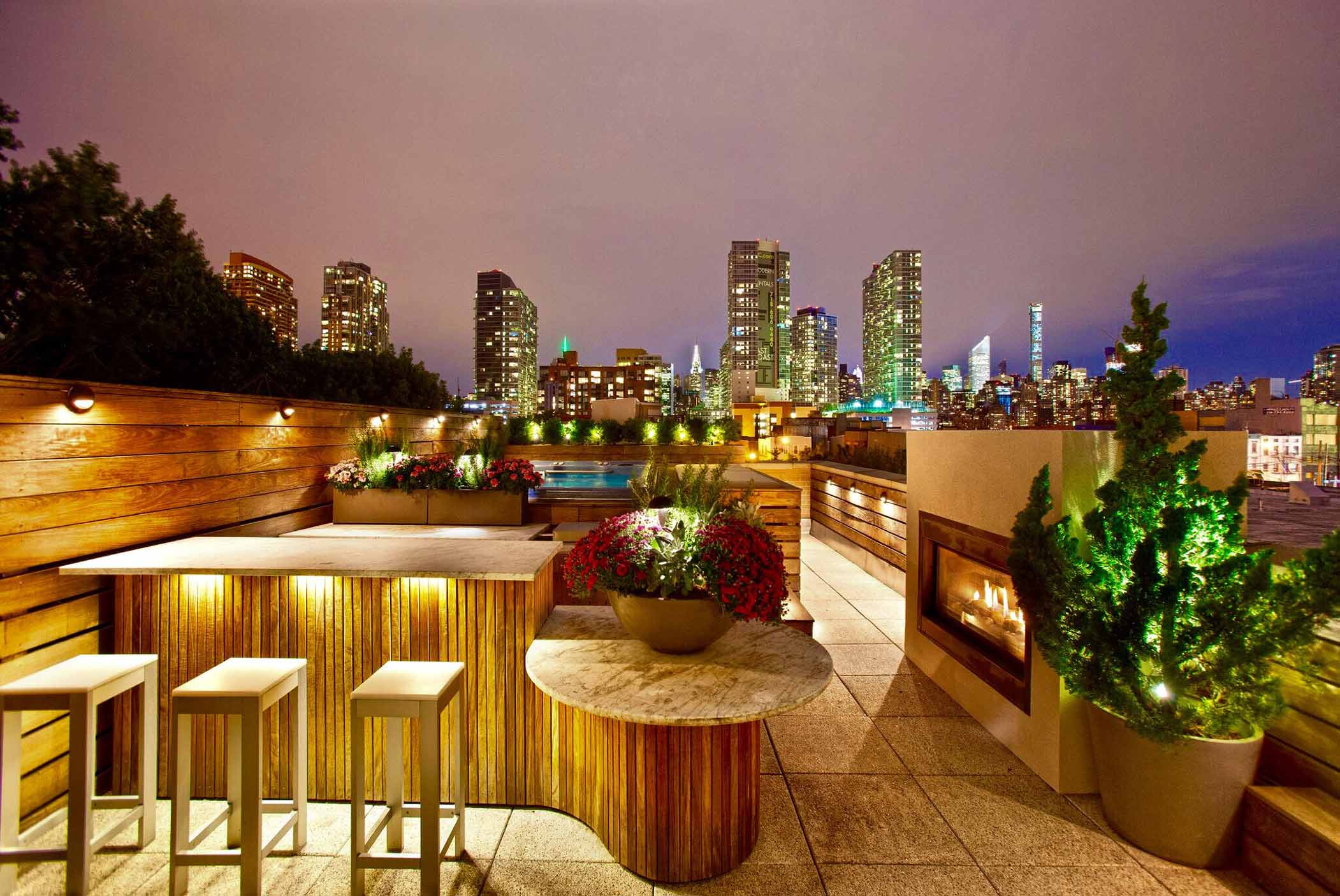 This modern condo project in the heart of Long Island City features 23 high-end apartments, a parking garage for 12 cars and a Zen garden with water features. TWA was responsible for construction documentation, construction administration and interior design. Our scope also included the design of a massive duplex apartment on the top two floors of the building, creating a sun-drenched two-level apartment with unbeatable city views, two outdoor patios and a swimming pool.