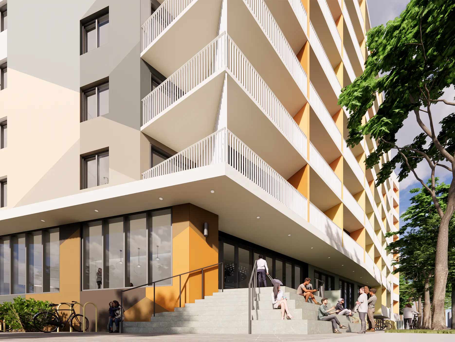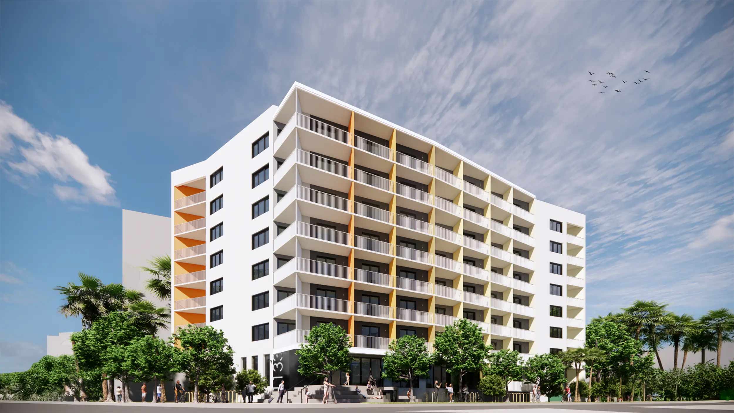 Set to begin construction in 2025, our newest micro-housing project brings 73 efficiently designed studio units to Miami’s evolving residential landscape. Rising eight stories, the building is designed to offer a practical and affordable living option for those seeking well-planned spaces in a compact footprint. With a focus on functionality, natural light, and shared community spaces, this project reflects the growing need for smart, accessible housing in the city. Thoughtfully integrated communal areas—including a fitness center, bicycle parking, and inviting lounge spaces—offer residents spaces to unwind and connect.