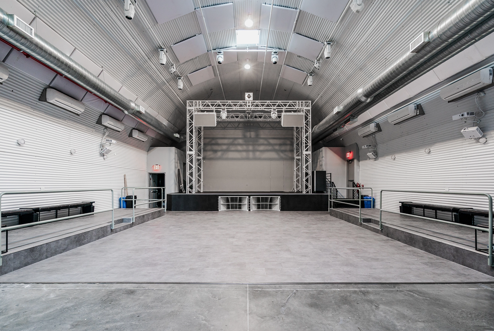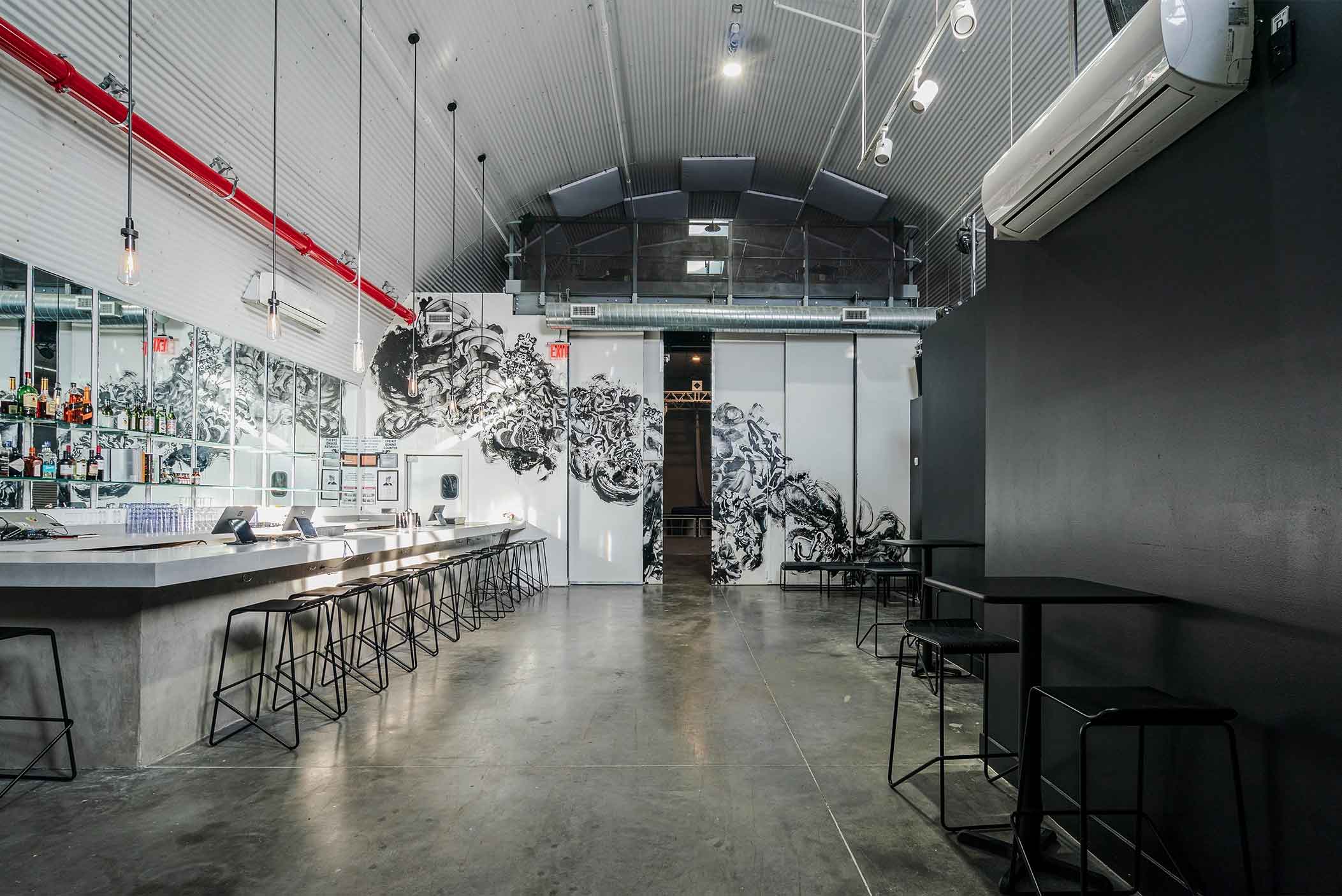 Working closely with clients from the DJ and performing arts community, TWA provided comprehensive design and construction support. The preexisting structure was rebuilt with a new structural slab, corrugated metal cladding, and thermal insulation. Special details were developed to prevent condensation and to ensure the mechanical systems could accommodate a full assembly load of 500 occupants. All new MEP systems, coordinated with acoustic and performance requirements, were integrated into the design.